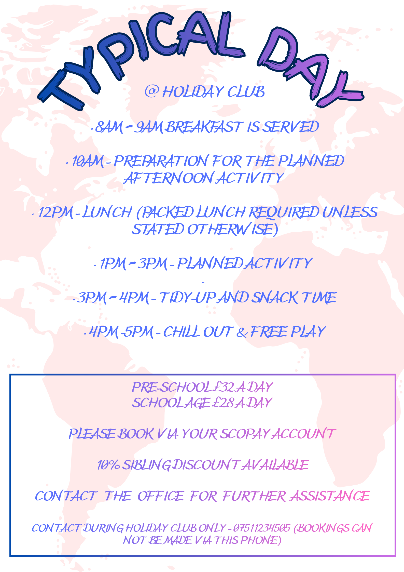 - Long Breakfast Club (includes breakfast) from 7.30am - £6.50
